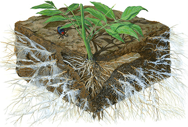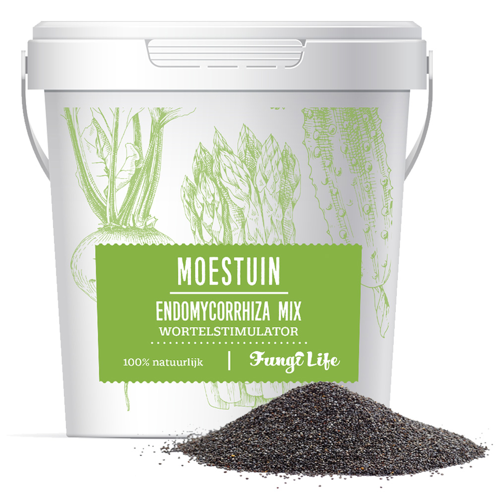Mycorrhiza is een bodemschimmel. Het ondersteunt de natuurlijke groei van jouw (moes)tuinplanten. De microscopische schimmeldraden vormen een hecht netwerk met het wortelstelsel en voorzien dit van van extra water en voedingsstoffen. Zo krijg je gezonde, sterke planten. Mycorrhiza is 100% natuurlijk en komt wereldwijd voor in de meeste natuurlijke ecosystemen.